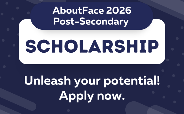 Two scholarships are awarded each year through the AboutFace Post-Secondary Scholarship Fund and these are made possible through the generosity of donors.